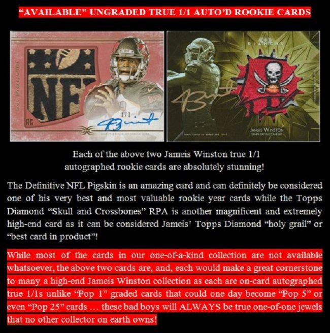 I collect true 1/1 autographed RCs of Jameis Winston with my son